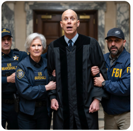 Susie Wiles (left), Trump Chief of Staff, slaps the cuffs on Federal Judge Jeb Boasberg (middle).