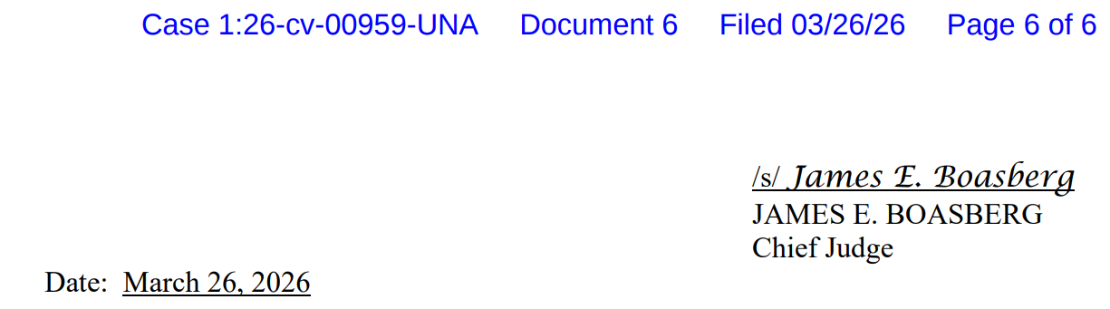 Here is Boasberg’s signature on the order: