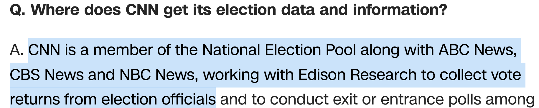“Edison Research and the National Election Pool have partnered exclusively with Reuters to distribute U.S. election data to clients around the World.”