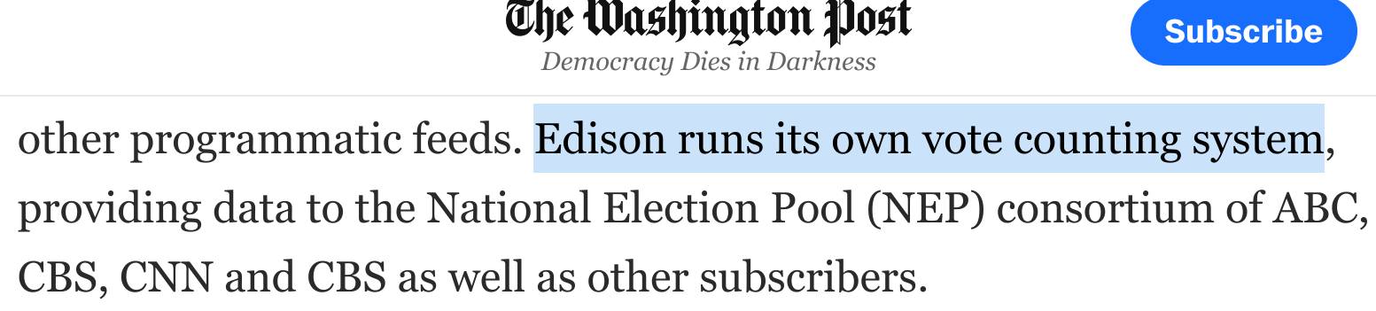Then Edison counts votes, flips them, and sends them to these media outlets to report fake news.