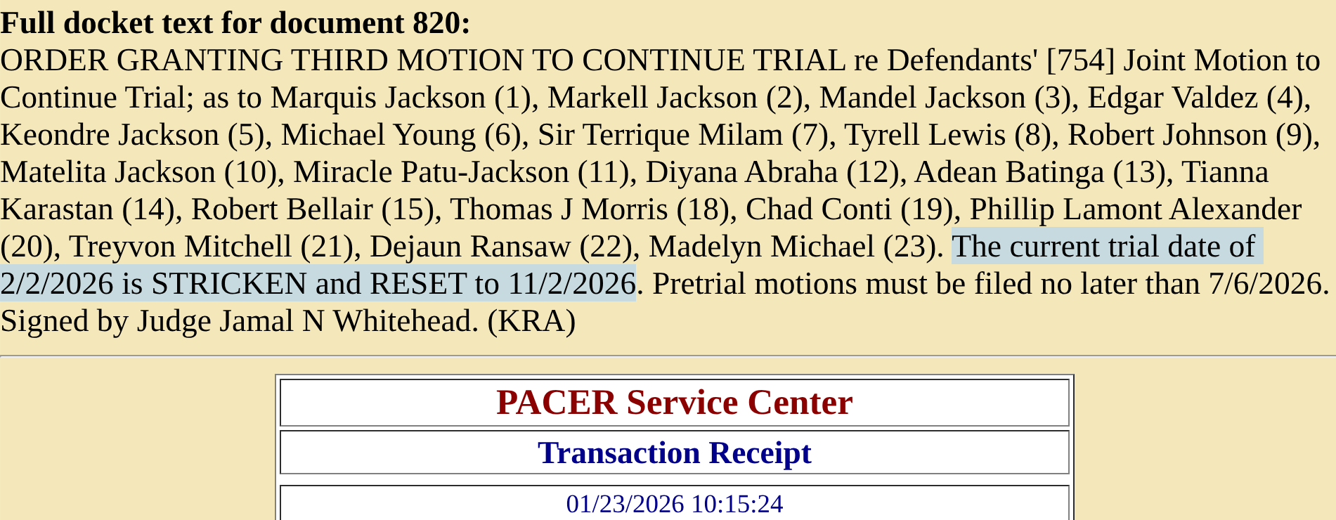 Trial date reset for Nov. 2nd.
