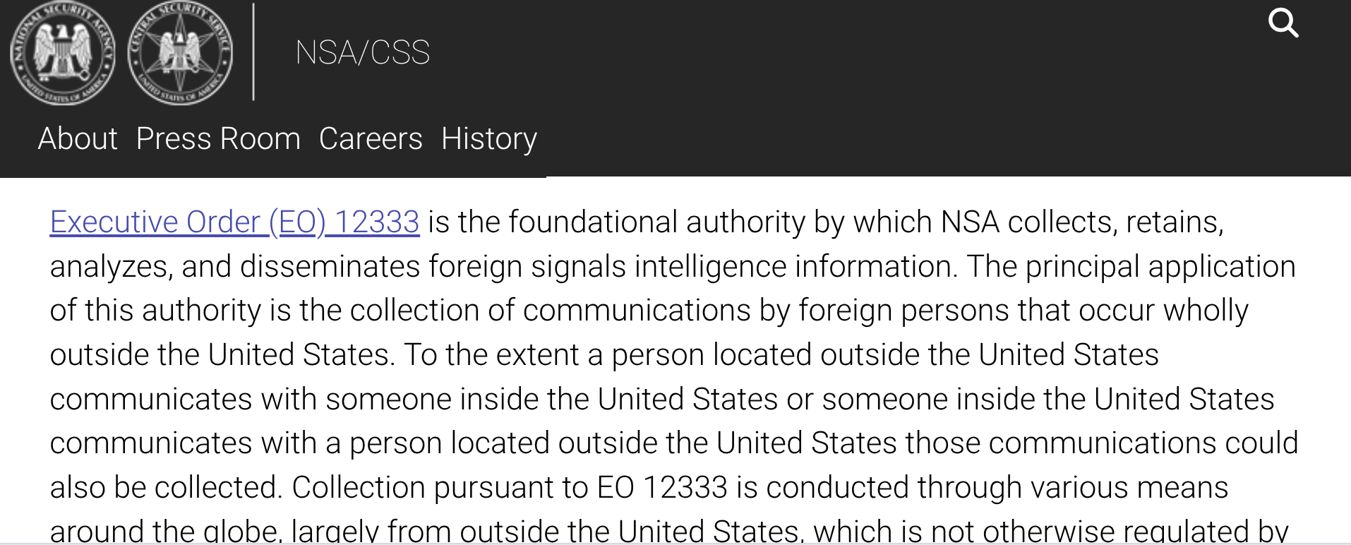 NSA said Executive Order 12333 negates the need for FISA renewal