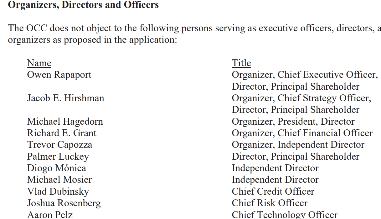 Here is a list of the executive officers, directors, and organizers of Erebor Bank: