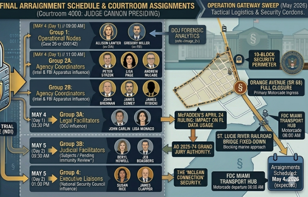 *Note: Group 4 Executive Coordinators (Rice, Clapper) and Group 3 Judicial Subjects (Howell, Boasberg) are currently scheduled for Initial Appearances on May 5, 2026, pending final unsealing of supplemental counts.